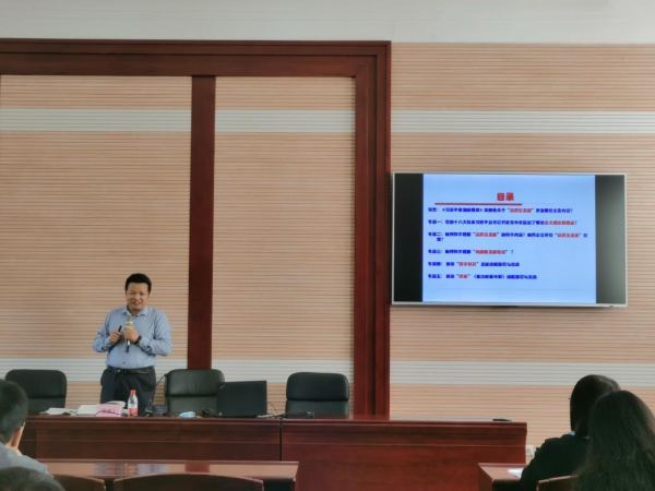 吴传清教授作为武汉大学中国发展战略与规划研究院副院长,武汉大学区域经济研究中心主任,湖北省武汉市、黄石市、恩施州人民政府决策咨询委员会委员,多篇咨询建议报告被中央及省市有关单位采纳。吴传清教授重点从习近平总书记高质量发展思想与实践这个角度,深入浅出地讲授了《习近平谈治国理政》第四卷中“高质量发展”的科学内涵和涉及的主要内容,强调走高质量发展之路就必须准确把握新发展阶段,深入贯彻新发展理念,加快构建新发展格局。吴传清教授还通过典型案例讲解了“数字经济”的概念和现实意义,并传达了省第十二次党代会报告相关精神要义,强调要结合湖北实际,努力建设全国构建新发展格局先行区。?
